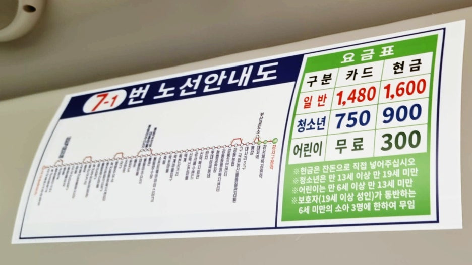 옆에 다람쥐 그림도 그려져 있습니다. 원래 122번을 타려고 했으나 마침 이 7-1번이 비슷한 시간대에 오길래 탄 것입니다.