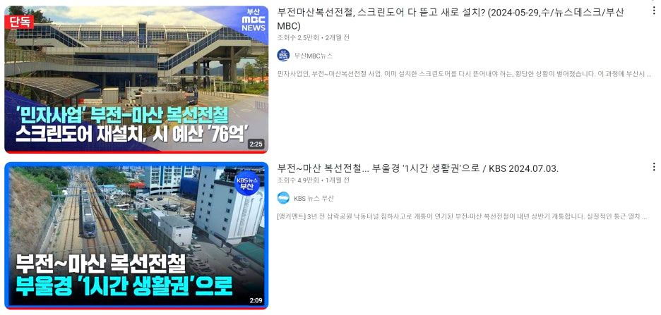 잔뜩 나오고 부전마산복선전철 하저터널로 검색 시 16년 착공 당시 보도만 나오는 미친 현상이 있습니다. 최신 이슈를