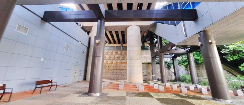 촬영했는데 지상 3층, 지하 1층이라고 보시면 됩니다. 1, 2층 모두 출입구가 있는 상황이고 승강장은 3층에 있다고 보시면